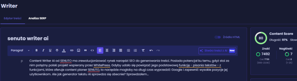 SENUTO Content Writer AI – czy się sprawdza?